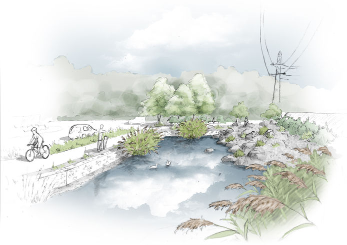 Site pollué, gestion des eaux de pluies différenciée, nature et biodiversité, axe de mobilité douce